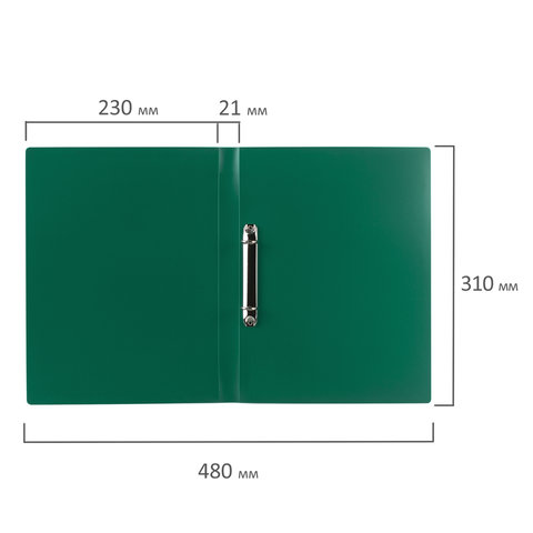 Папка на 2 кольцах STAFF, 21 мм, зеленая, до 170 листов, 0,5 мм, 225719