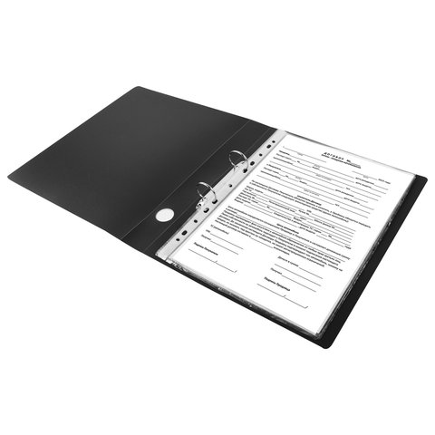 Папка на 2 кольцах STAFF, 40 мм, черная, до 300 листов, 0,5 мм, 225721