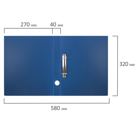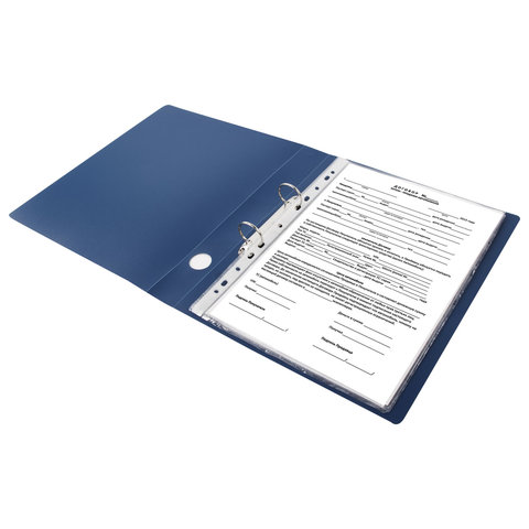Папка на 2 кольцах STAFF, 40 мм, синяя, до 300 листов, 0,5 мм, 225720