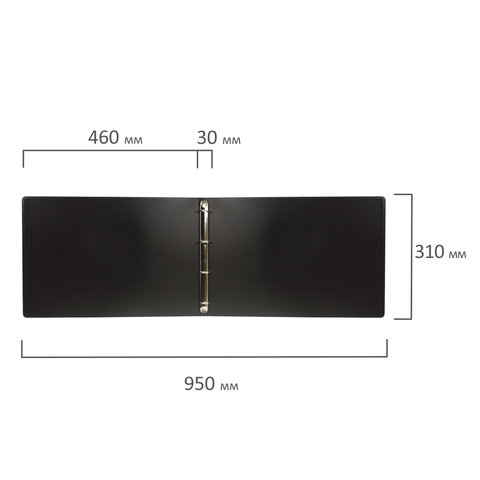 Папка на 4 кольцах БОЛЬШОГО ФОРМАТА А3, ГОРИЗОНТАЛЬНАЯ, 30 мм, черная, 0,8 мм, BRAUBERG "Стандарт", 225768