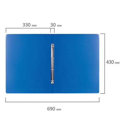 Папка на 4 кольцах БОЛЬШОГО ФОРМАТА А3, ВЕРТИКАЛЬНАЯ, 30 мм, синяя, 0,8 мм, BRAUBERG "Стандарт", 225765