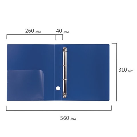 Папка на 4 кольцах BRAUBERG "Стандарт", 40 мм, синяя, до 300 листов, 0,9 мм, 221619