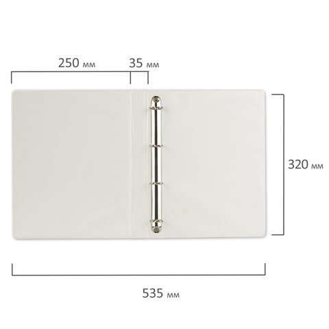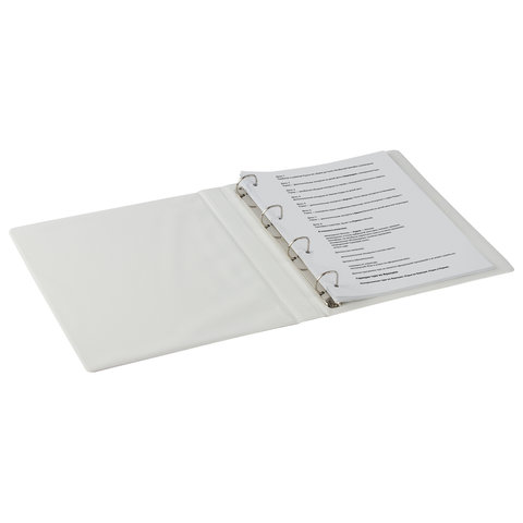 Папка на 4 кольцах с передним прозрачным карманом BRAUBERG, 35 мм, картон/ПВХ, белая, до 250 листов, 221486