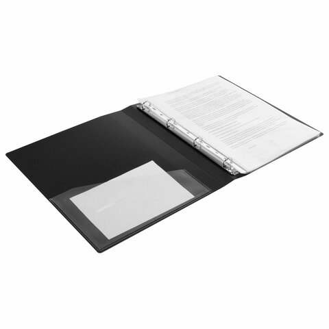 Папка на 4 кольцах, ширина 25 мм, BRAUBERG EXTRA, до 170 листов, ЧЕРНАЯ, 0,7 мм, 270482