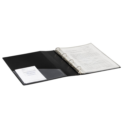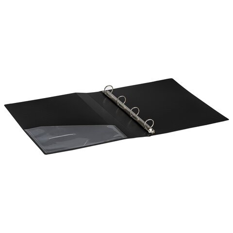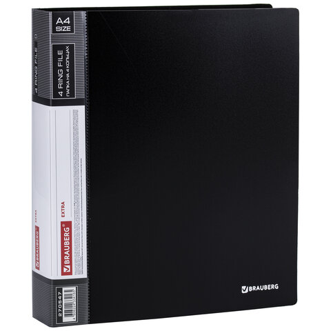 Папка на 4 кольцах, ширина 40 мм, BRAUBERG EXTRA, до 300 листов, ЧЕРНАЯ, 0,8 мм, 270547