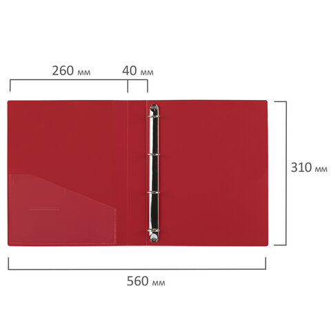 Папка на 4 кольцах, ширина 40 мм, BRAUBERG EXTRA, до 300 листов, КРАСНАЯ, 0,8 мм, 270549