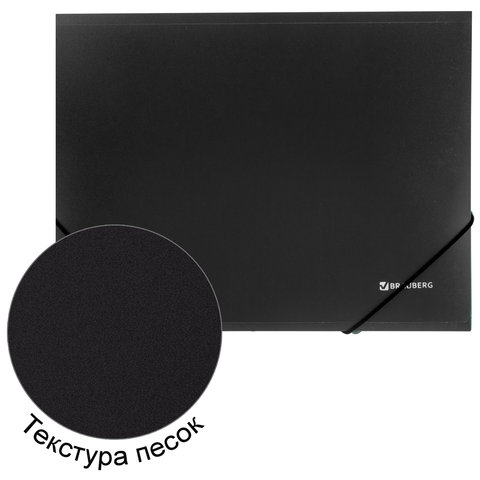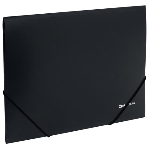 Папка на резинках BRAUBERG, стандарт, черная, до 300 листов, 0,5 мм, 221624