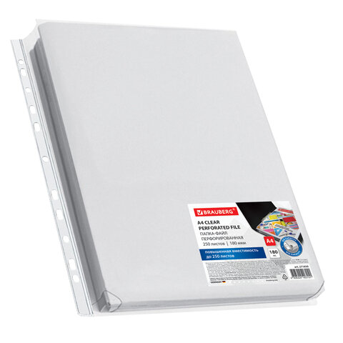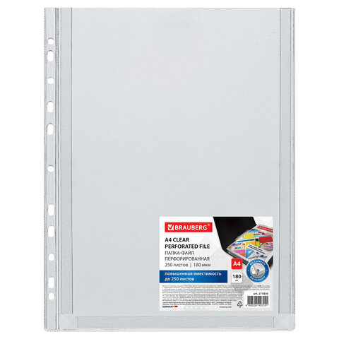 Папка-файл перфорированная 1 штука БОЛЬШОЙ ВМЕСТИМОСТИ до 250 л., A4, ПВХ, 180 мкм, BRAUBERG, 271830