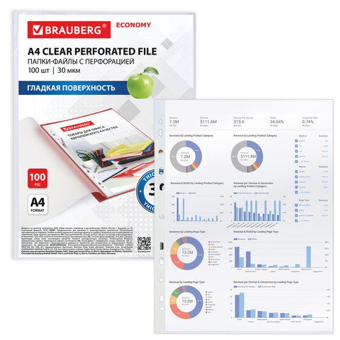 Перфорированные папки-файлы BRAUBERG предназначены для хранения документов в папке с любым кольцевым механизмом или скоросшивателем.