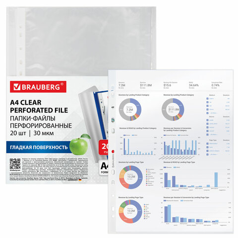 Перфорированные папки-файлы BRAUBERG предназначены для хранения документов в папке с любым кольцевым механизмом или скоросшивателем.