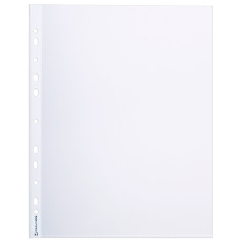 Папки-файлы перфорированные А4+ BRAUBERG, КОМПЛЕКТ 50 шт., матовые, СВЕРХПРОЧНЫЕ, 100 мкм, 225219