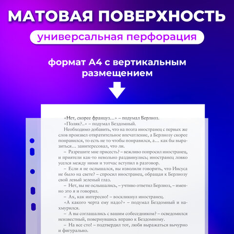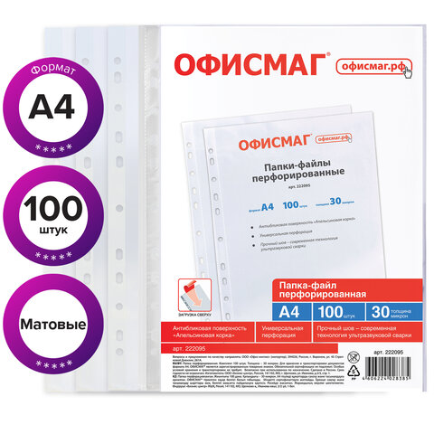 Папки-файлы перфорированные А4 ОФИСМАГ "Стандарт", КОМПЛЕКТ 100 шт., матовые, 30 мкм, 222095