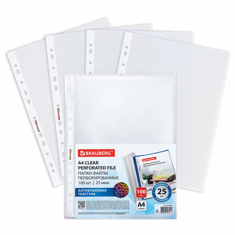 Перфорированные папки-файлы BRAUBERG предназначены для хранения и защиты бумажных документов от загрязнения и механических повреждений.