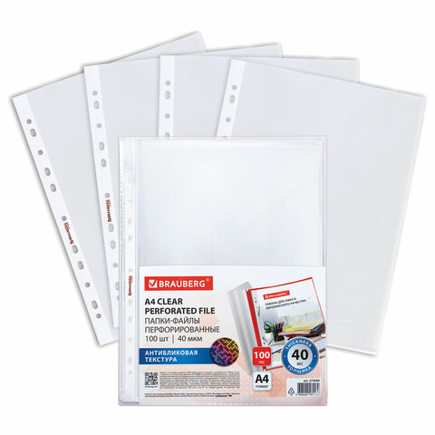 Перфорированные папки-файлы BRAUBERG предназначены для хранения и защиты бумажных документов от загрязнения и механических повреждений.