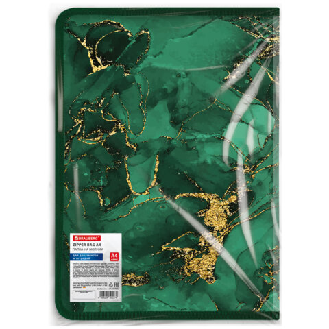 Папка на молнии для документов и тетрадей пластиковая BRAUBERG "Мрамор", А4, 330х230 мм, 0,5 мм, ассорти, 273932