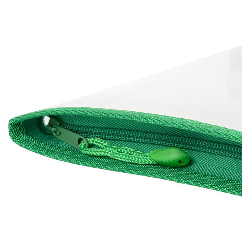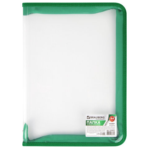 Папка на молнии пластиковая BRAUBERG "Диагональ", А4, 325х230 мм, прозрачная, молния ассорти, 224052