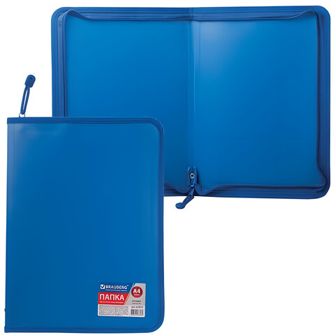 Папка на молнии пластиковая BRAUBERG "Стандарт", стандартная фактура, А4, 325х230 мм, матовая, синяя, 224057