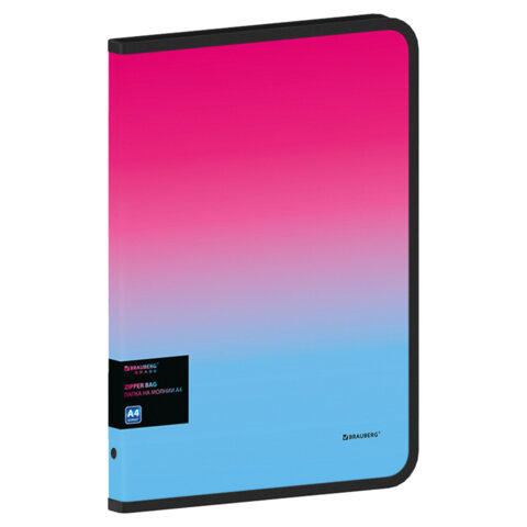 Папка объемная на молнии пластиковая BRAUBERG "Grade", А4, 330х240 мм, 600 мкм, розово-голубой градиент, 271975