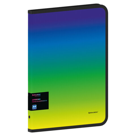 Папка объемная на молнии пластиковая BRAUBERG GRADE, А4, 330х240мм, 600мкм, зелено-голубой градиент, 271974