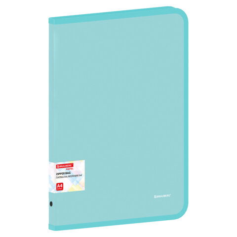 Папка объемная на молнии пластиковая BRAUBERG PASTEL, А4, 330х240 мм, 600 мкм, цвет мятный, 271973