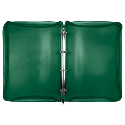 Папка объемная на молнии пластиковая на 4 кольцах, 35 мм, А4, BRAUBERG PIXEL, темно-зеленая, 0,7 мм, 273079