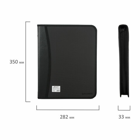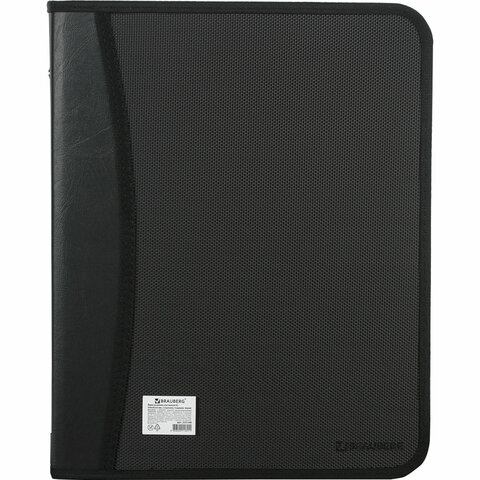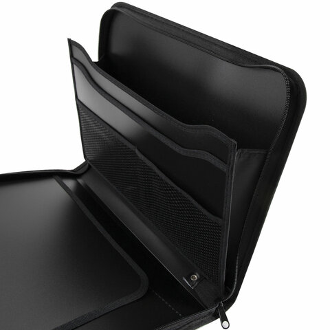 Папка на молнии пластиковая BRAUBERG, А4, 350х282х33 мм, 2 отделения, 4 кармана, бизнес-класс, черная, 225166