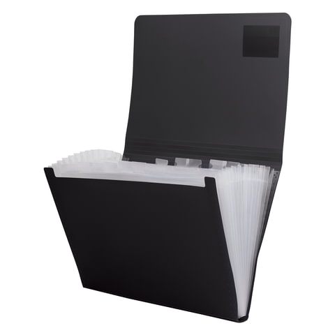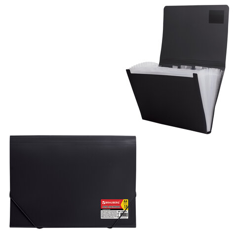 Папка на резинках BRAUBERG "Business", А4, 13 отделений, пластиковый индекс, черная, 0,5 мм, 224147