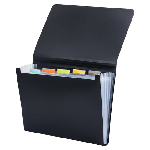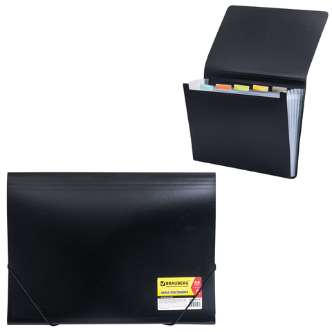 Папка на резинках BRAUBERG "Business", А4, 7 отделений, пластиковый индекс, черная, 0,5 мм, 224145