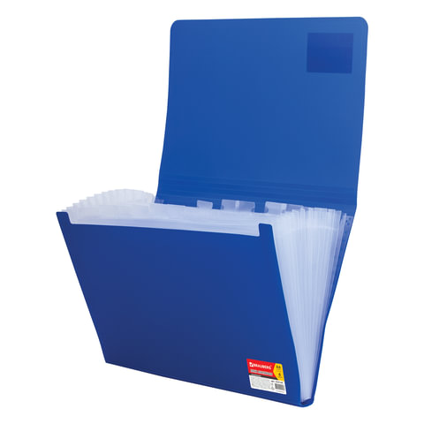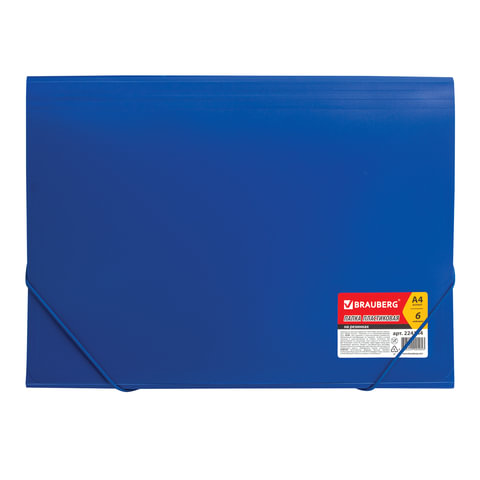 Папка на резинках BRAUBERG "Business", А4, 7 отделений, пластиковый индекс, синяя, 0,5 мм, 224144