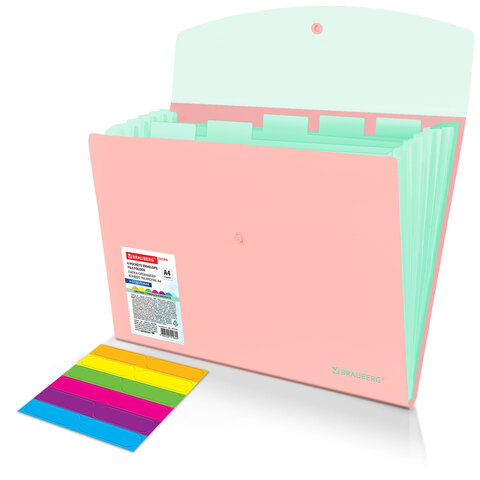 Папка-органайзер конверт на кнопке 6 отделений, BRAUBERG "Extra", A4, персиковая с мятным, 274102