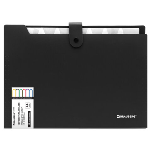 Папка-органайзер на кнопке 12 отделений, BRAUBERG "Extra", А4, черная с белым, 271930
