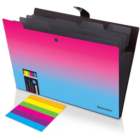 Папка-органайзер на кнопке 5 отделений, BRAUBERG GRADE, A4, розово-голубой градиент, 274091