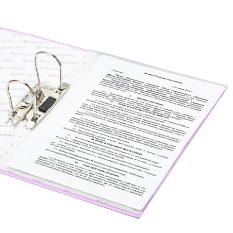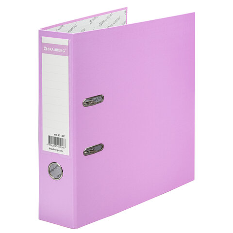 Папка-регистратор BRAUBERG PASTEL ламинированная, 75 мм, цвет лиловый, 271837
