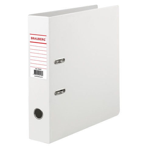 Папка-регистратор BRAUBERG с двухсторонним покрытием из ПВХ, 70 мм, белая, 222651