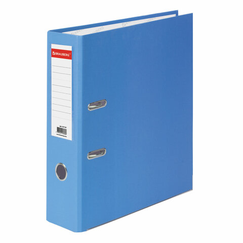 Папка-регистратор BRAUBERG с покрытием из ПВХ, 80 мм, с уголком, голубая (удвоенный срок службы), 227197