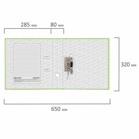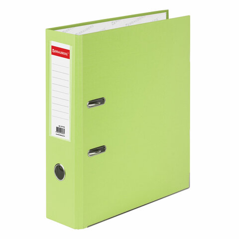 Папка-регистратор BRAUBERG с покрытием из ПВХ, 80 мм, с уголком, лайм (удвоенный срок службы), 227196