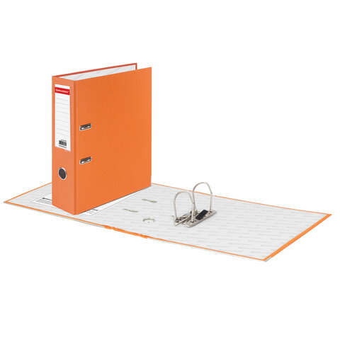 Папка-регистратор BRAUBERG с покрытием из ПВХ, 80 мм, с уголком, оранжевая (удвоенный срок службы), 227199