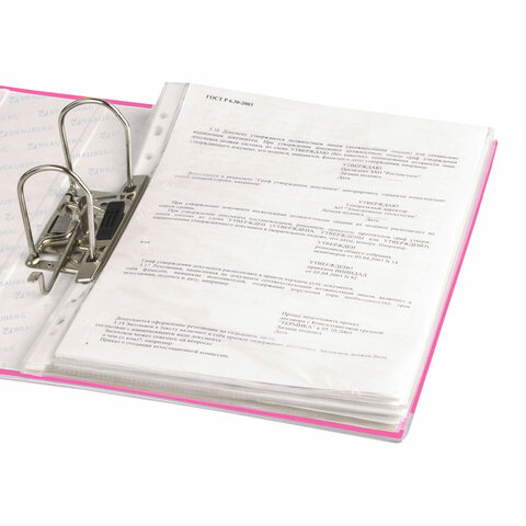 Папка-регистратор BRAUBERG с покрытием из ПВХ, 80 мм, с уголком, розовая (удвоенный срок службы), 227195