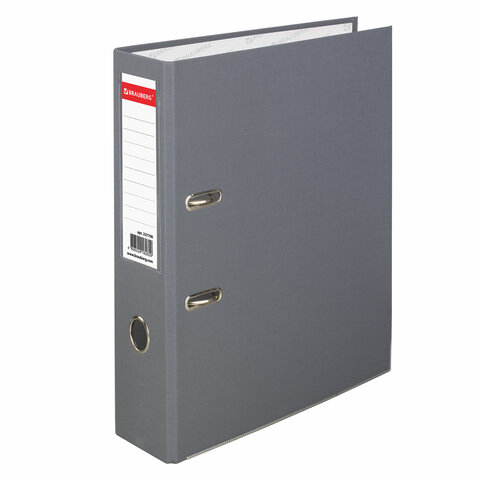 Папка-регистратор BRAUBERG с покрытием из ПВХ, 80 мм, с уголком, серая (удвоенный срок службы), 227190