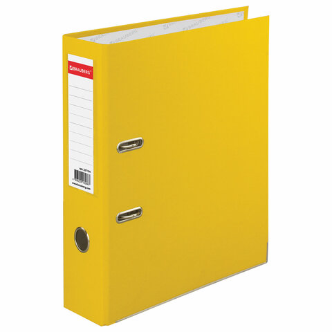 Папка-регистратор BRAUBERG с покрытием из ПВХ, 80 мм, с уголком, желтая (удвоенный срок службы), 227194