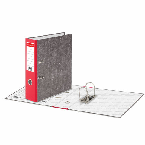 Папка-регистратор BRAUBERG, усиленный корешок, мраморное покрытие, 80 мм, с уголком, красная, 228029
