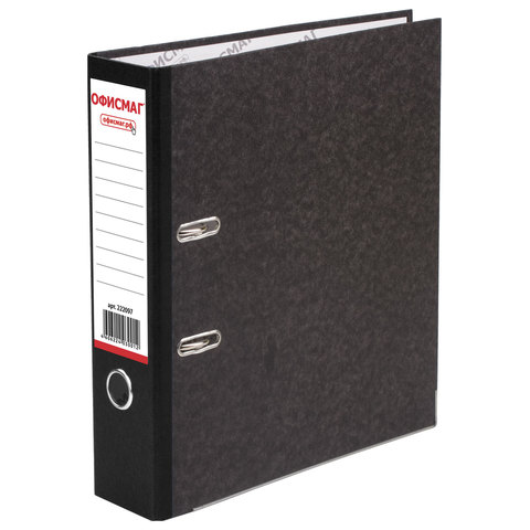 Папка-регистратор ОФИСМАГ, фактура стандарт, с мраморным покрытием, 75 мм, черный корешок, 222097