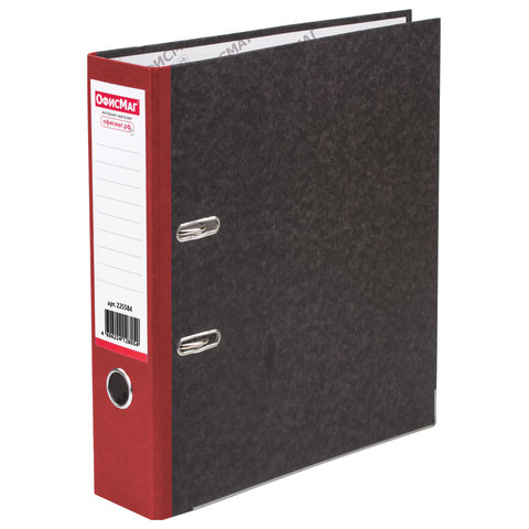 Папка-регистратор ОФИСМАГ, фактура стандарт, с мраморным покрытием, 75 мм, красный корешок, 225584