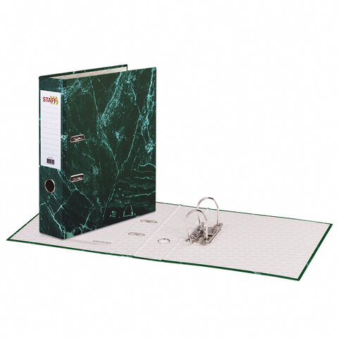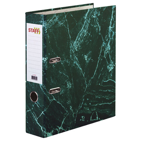 Папка-регистратор STAFF "Basic" БЮДЖЕТ с мраморным покрытием, 70 мм, без уголка, зеленая, 229620