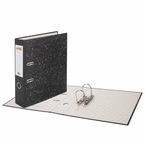 Папка-регистратор STAFF "EVERYDAY" с мраморным покрытием, 70 мм, без уголка, черный корешок, 224616