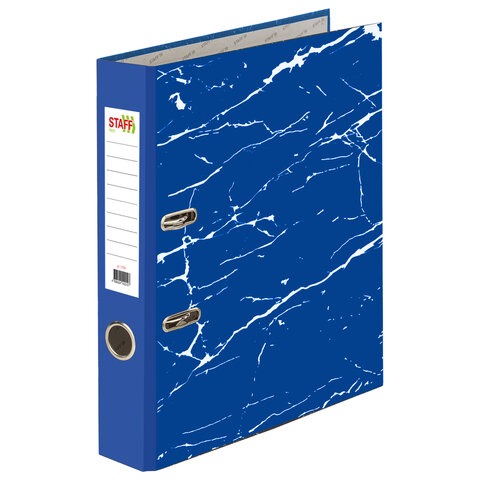 Папка-регистратор STAFF "Profit" с мраморным покрытием, 75 мм, с уголком, синяя, СЪЕМНЫЙ МЕХАНИЗМ, 272010