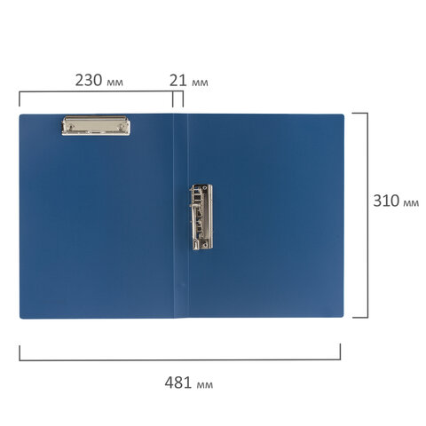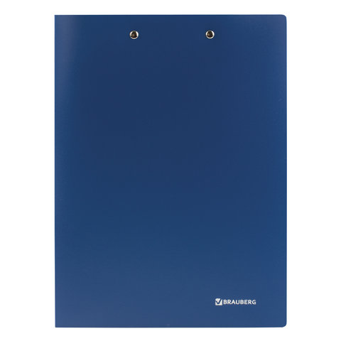 Папка с 2-мя металлическими прижимами BRAUBERG стандарт, синяя, до 100 листов, 0,6 мм, 221625