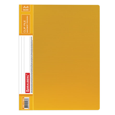 Папка с боковым металлическим прижимом и внутренним карманом BRAUBERG "Contract", желтая, до 100 л., 0,7 мм, бизнес-класс, 221790