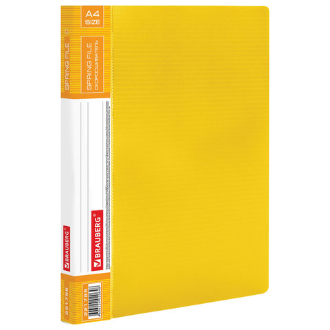 Папка с металлическим скоросшивателем и внутренним карманом BRAUBERG "Contract", желтая, до 100 л., 0,7 мм, бизнес-класс, 221785