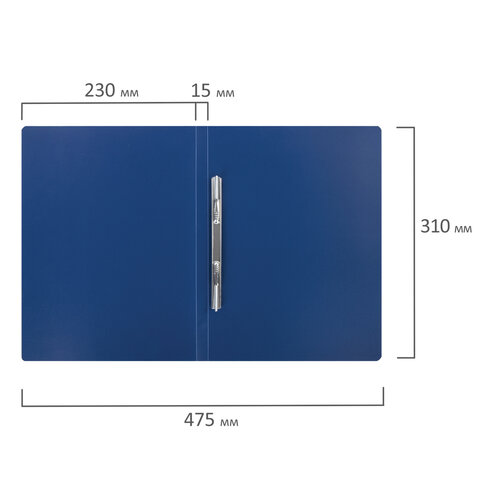 Папка с металлическим скоросшивателем STAFF, синяя, до 100 листов, 0,5 мм, 229224